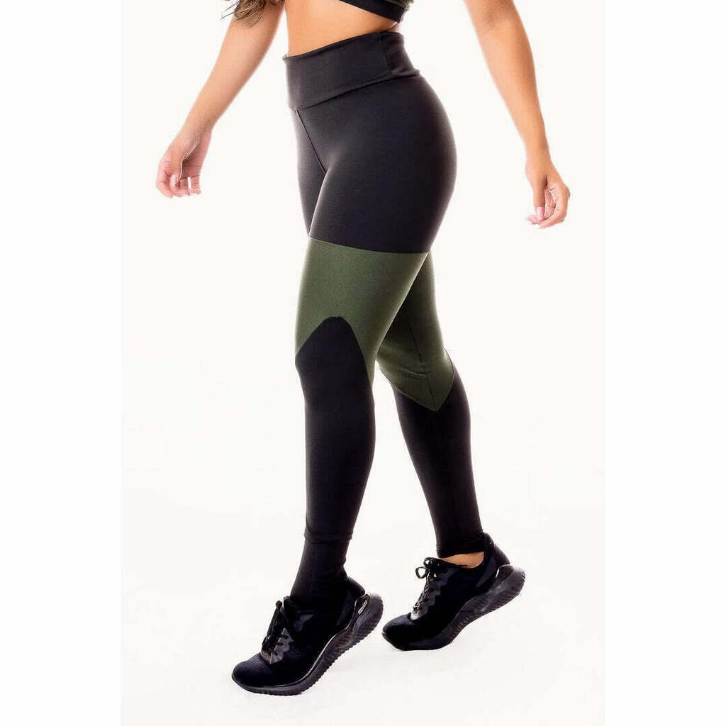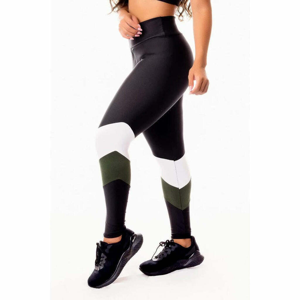 Calça Legging Cintura Alta Preta com Verde Militar e Branco | REF: SV10