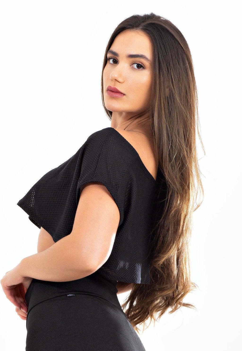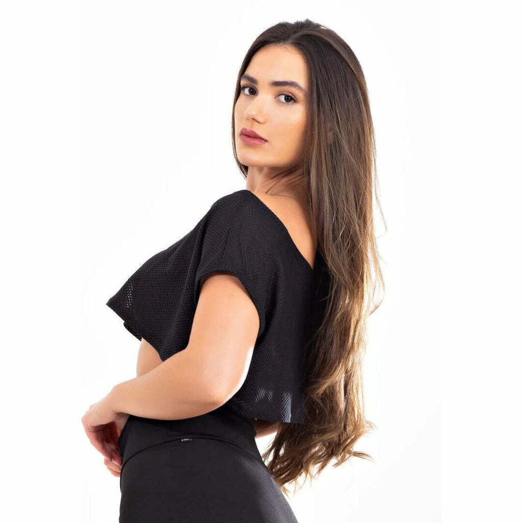 O tecido possui bastante elastano o que gera uma ótima elasticidade na peça.