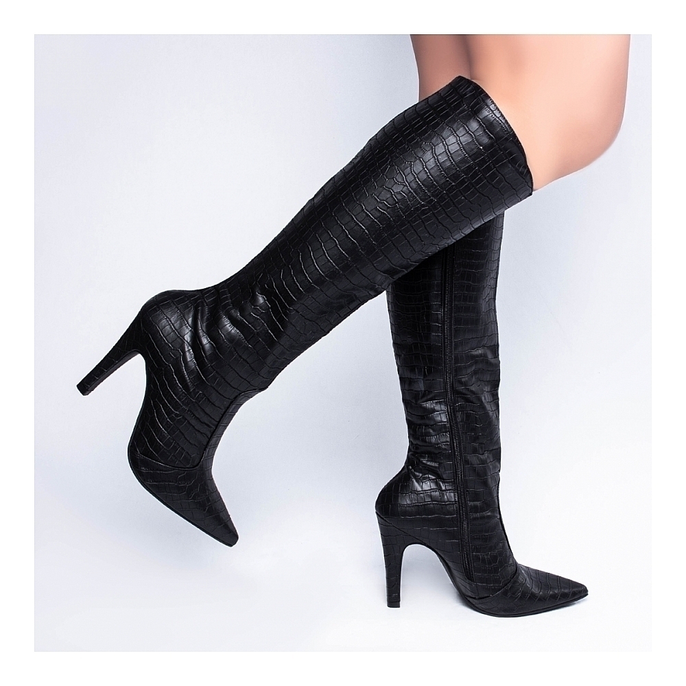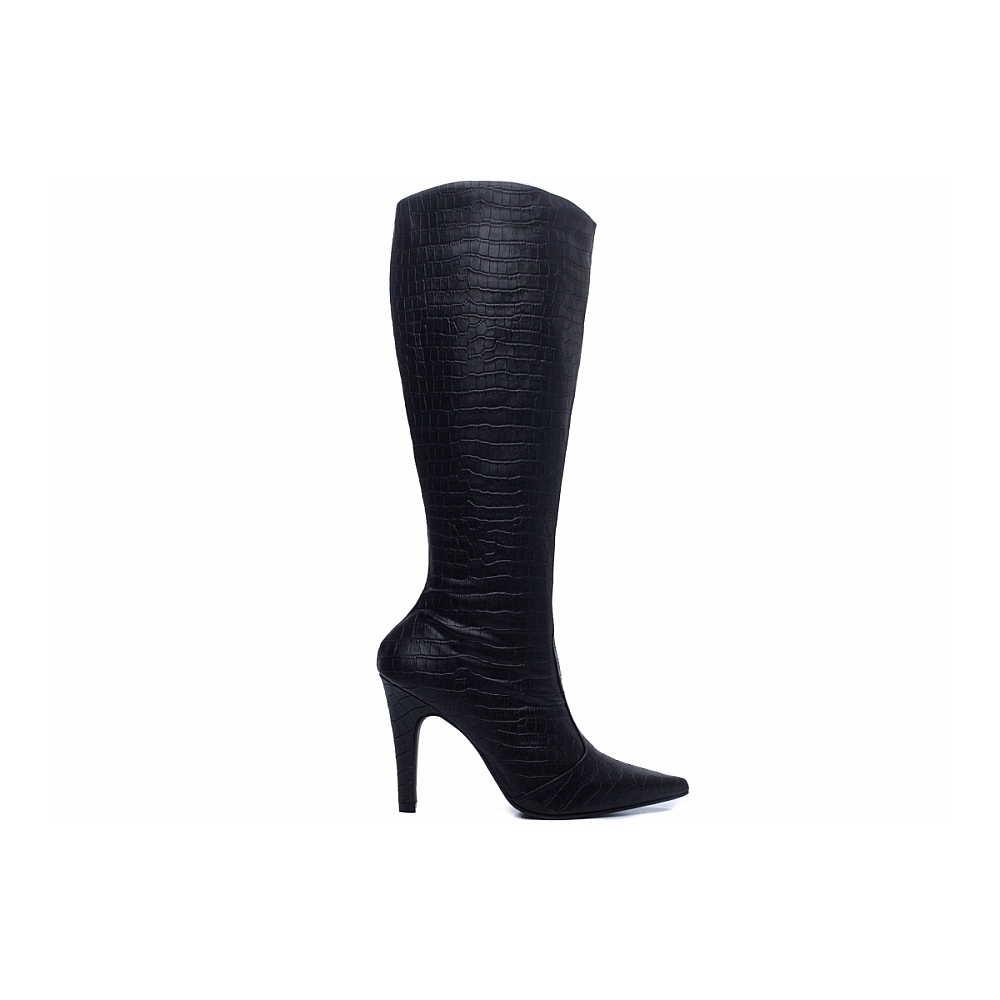 Salto: 10 cm de Altura e Revestido em Napa Croco na cor Preto;