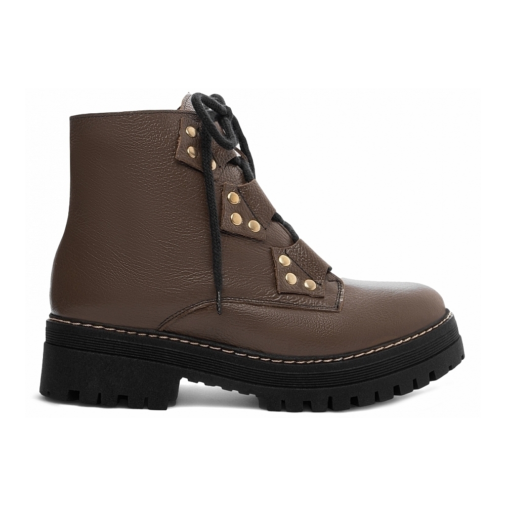 Enfeites: Zíper na Cor Marrom Café, Cadarço Preto e Apliques na Cor Dourado;