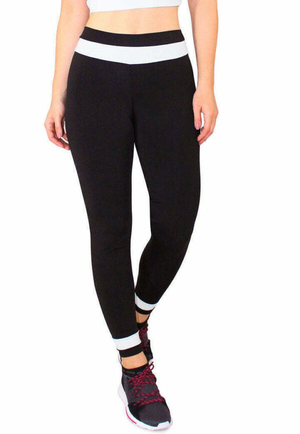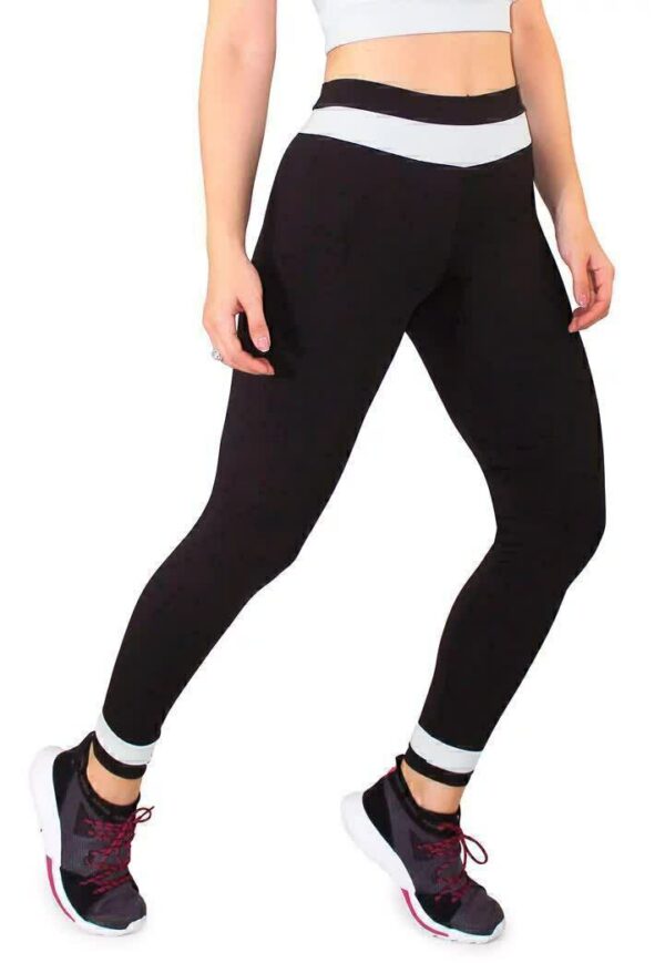 Calça Detalhe Branco Cintura Legging Fitness Preto | REF: LC41
