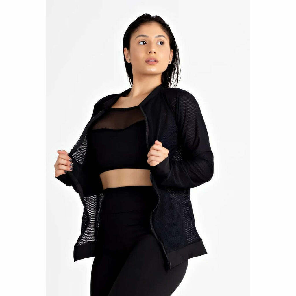 O tecido possui bastante elastano o que gera uma ótima elasticidade a peça.