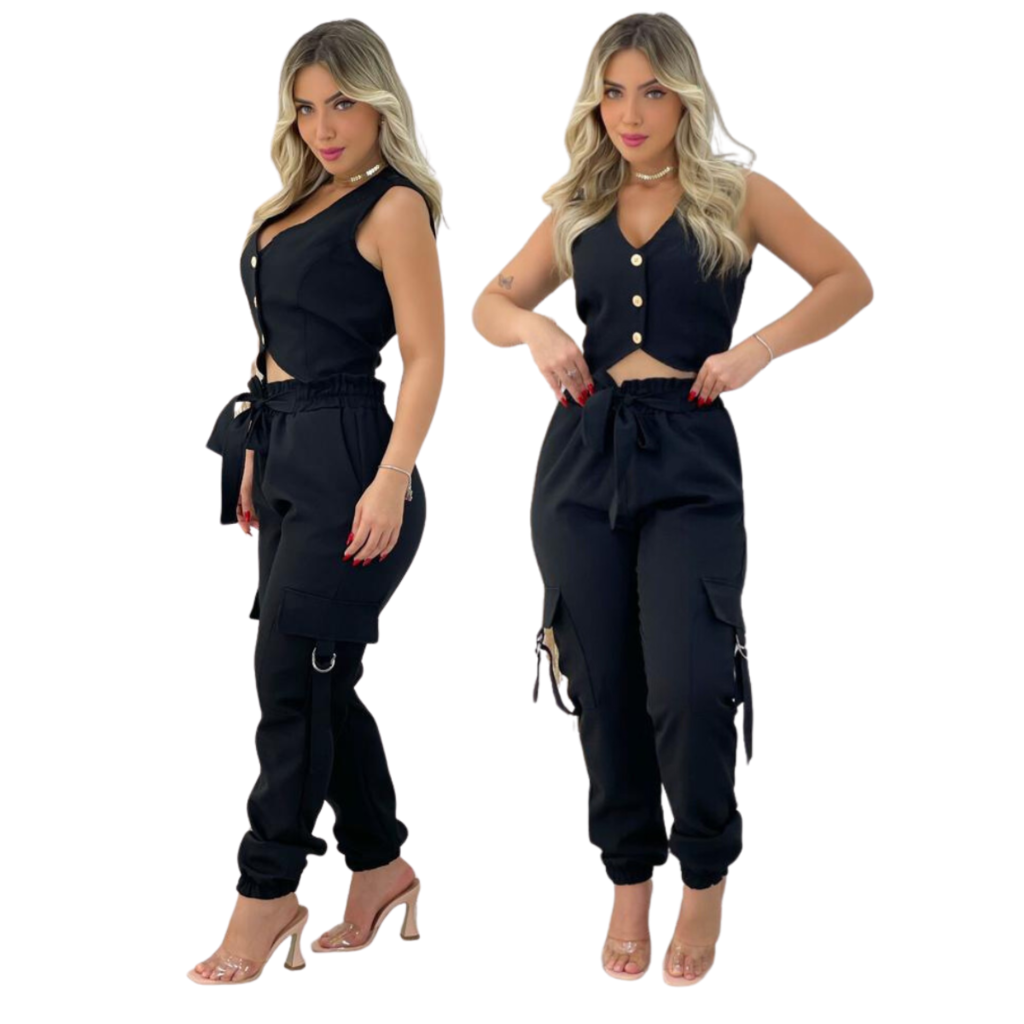 Conjunto Blusa C/botões e Calça de Alfaiataria Preto
