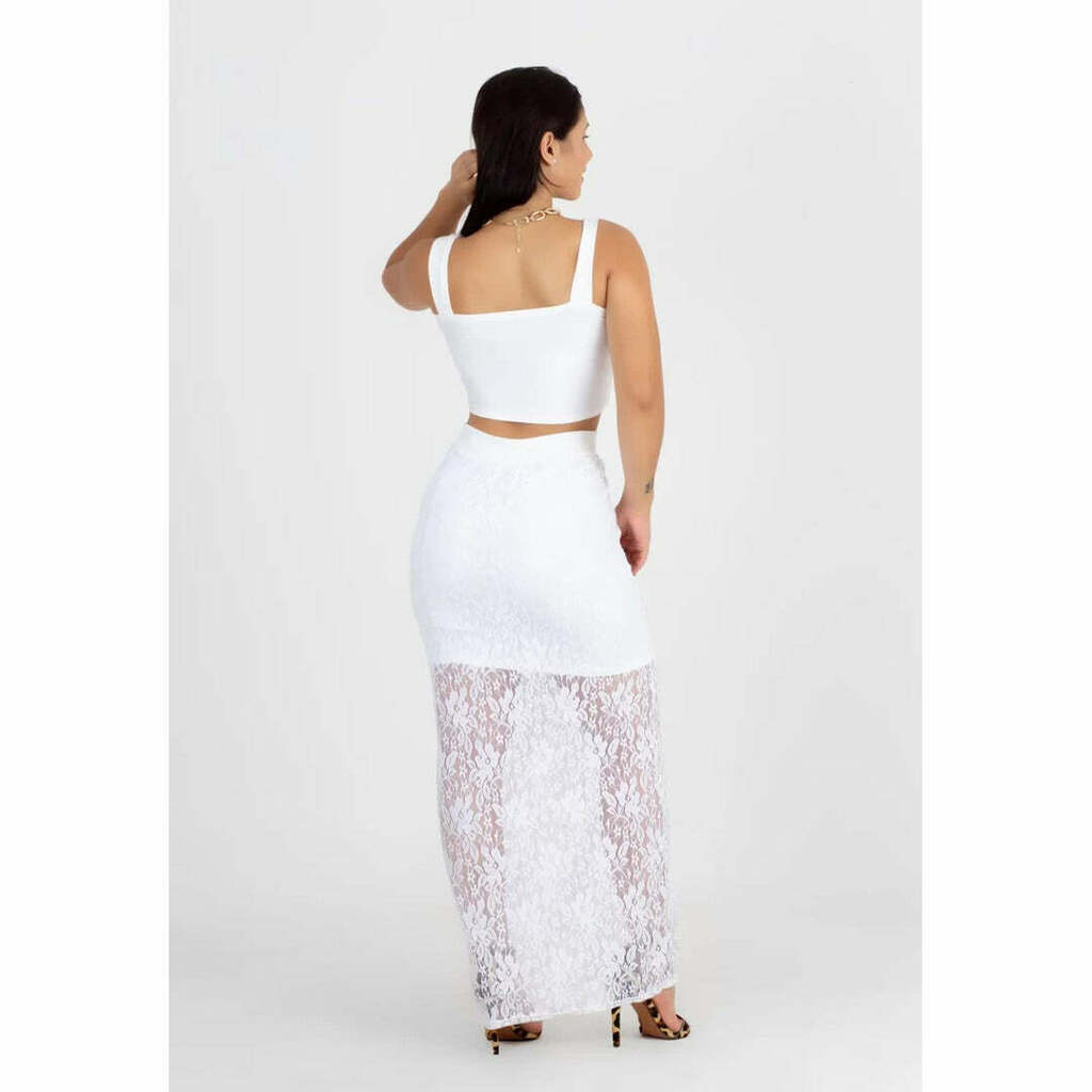 O Conjunto Cropped e Saia de Renda com Fenda Lateral Preto oferece elegância e sofisticação em um tecido firme e elástico, sem transparência, sem bolinhas e desbotamento. Sua modelagem ampla e personalizada se adapta perfeitamente ao corpo, proporcionando excelente qualidade em cada peça.