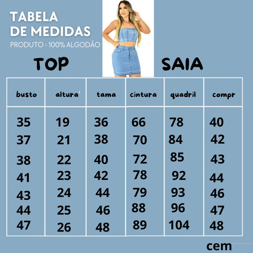 Descrição do Produto: Conjunto Jeans Feminino (Top + Saia)
