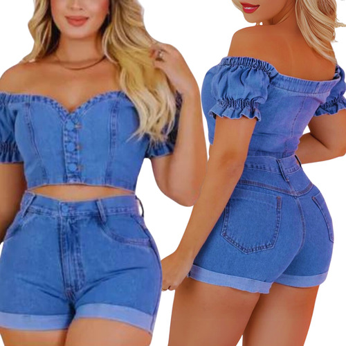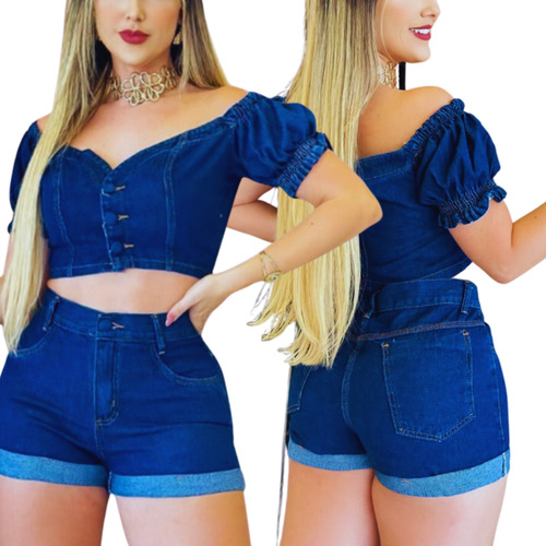 Descrição do Produto: Conjunto Jeans Feminino (Cropped + Short)