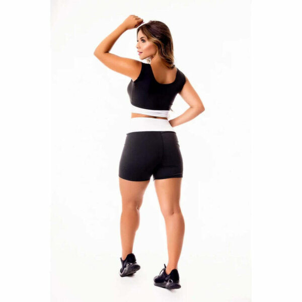 Conjunto Short Preto com Branco Cintura Alta e Cropped Regata | REF: CSV18