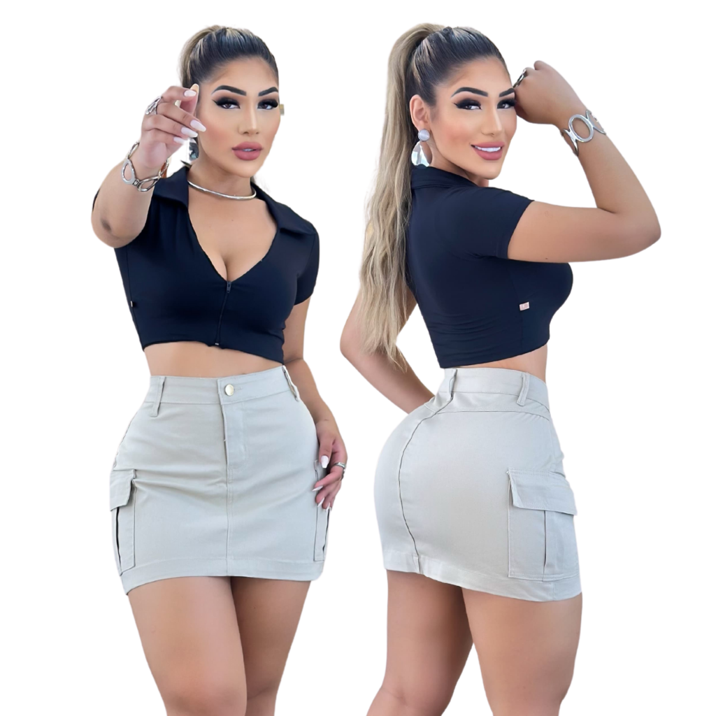 Atualize seu guarda-roupa com a Saia Cargo Estilo Militar Detalhe de Bolsos Laterais, uma peça que une estilo, conforto e elasticidade. Com um design moderno e despojado, esta saia é perfeita para qualquer ocasião, desde passeios informais até encontros especiais.