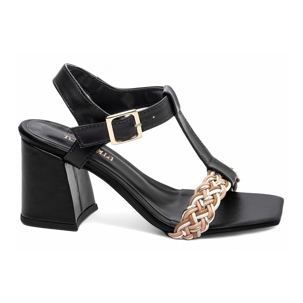 Salto: Grosso com 7 cm de Altura Revestido em Napa Preto;