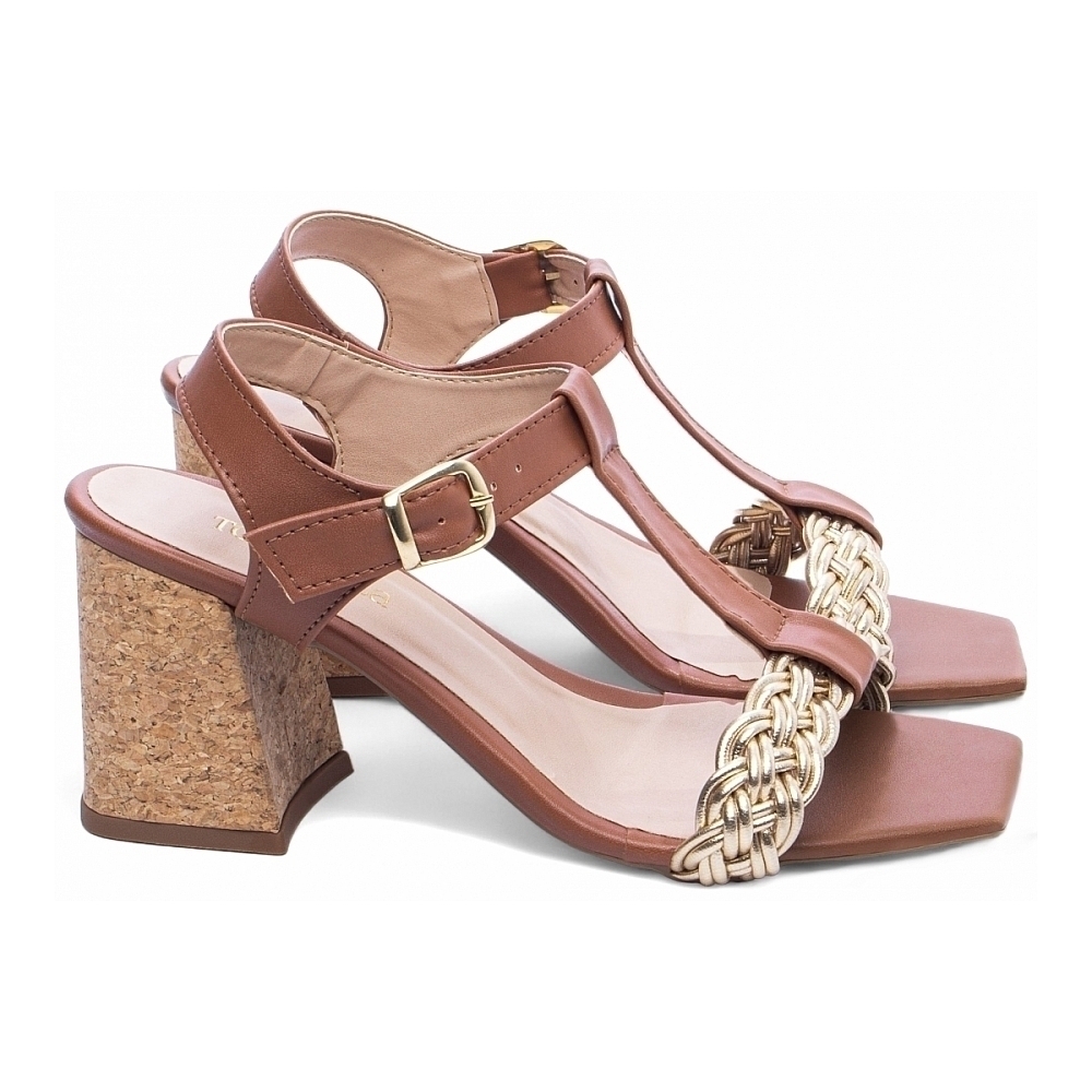 Palmilha: 8 mm de Espessura, Espuma em EVA, Revestida em Napa Caramelo e Taloneira Napa Bege;