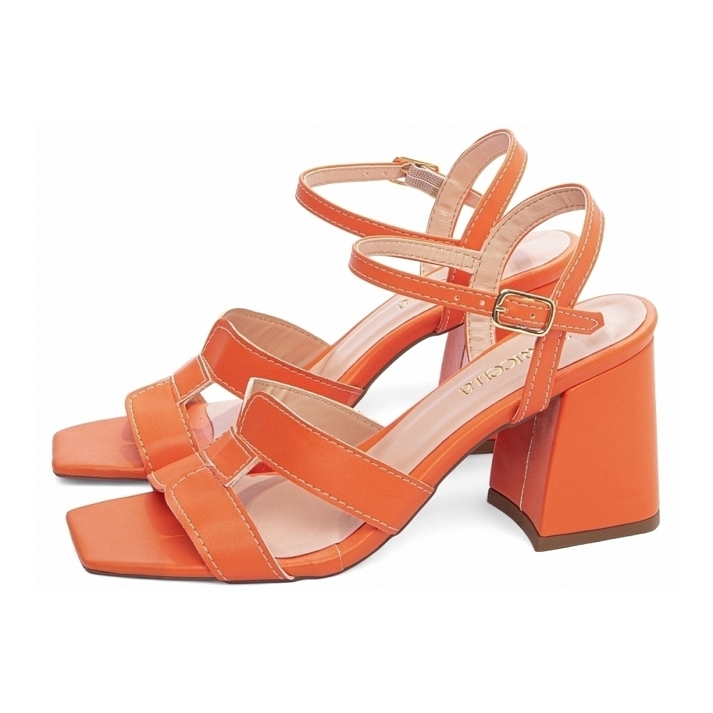 Salto: Grosso com 7 cm de Altura Revestido em Napa Laranja;