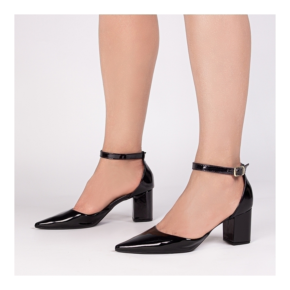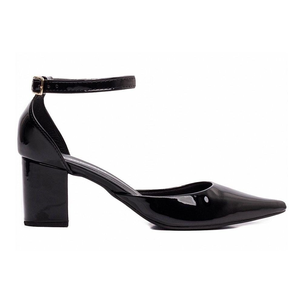 Salto: 6,5 cm de Altura encapado em Verniz Preto;