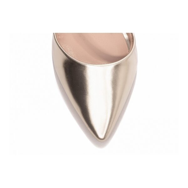 Salto: 9 cm de Altura encapado em Napa Metalizado Ouro Light;