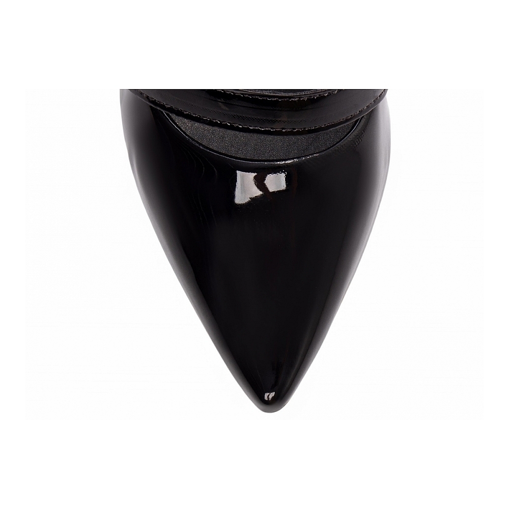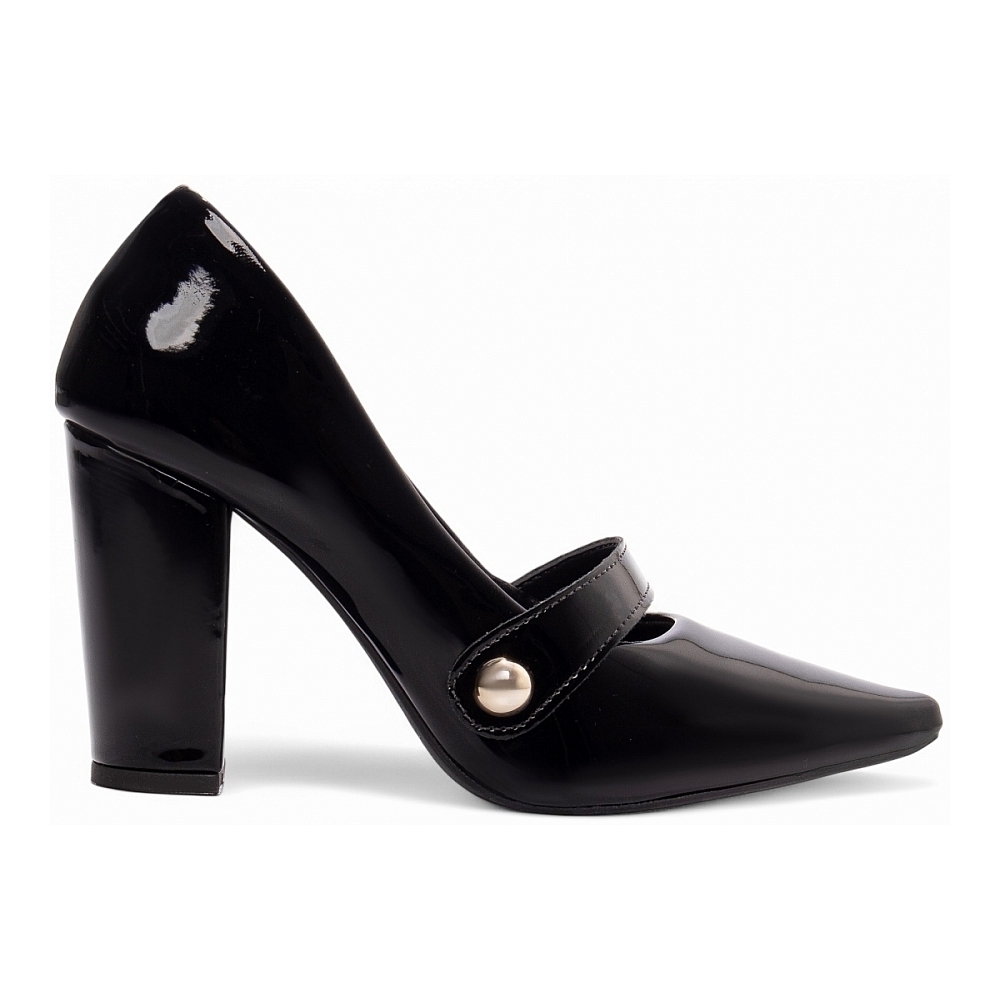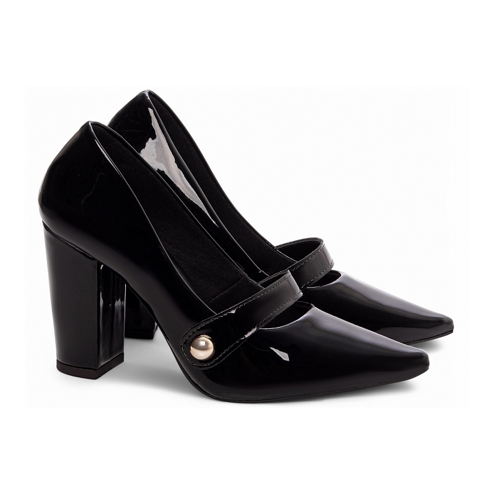 Salto: 9 cm de Altura encapado em Verniz Preto;