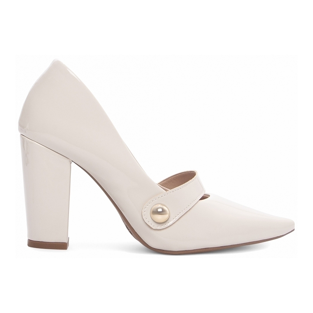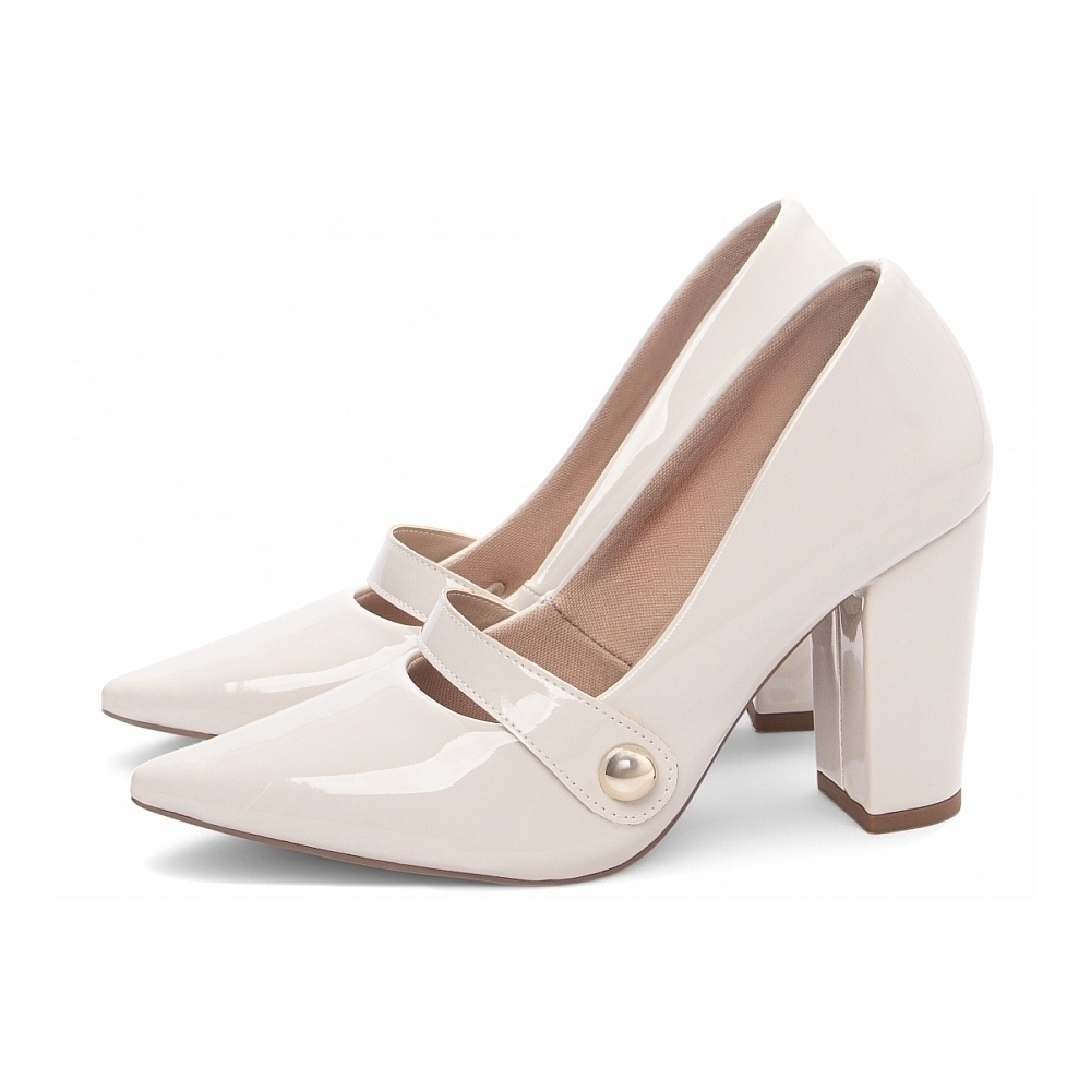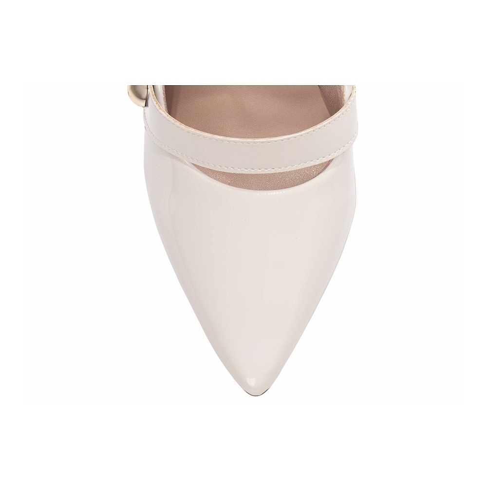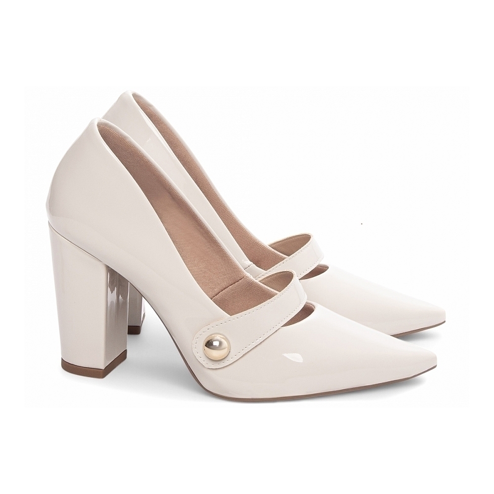 Salto: 9 cm de Altura encapado em Verniz Off White;