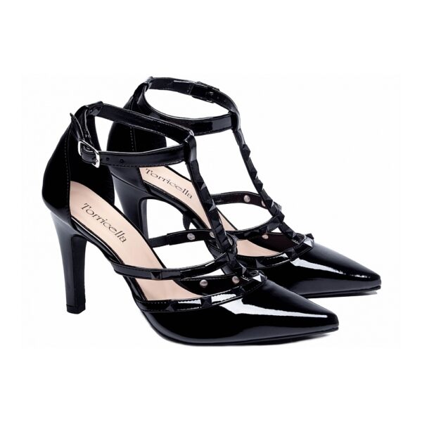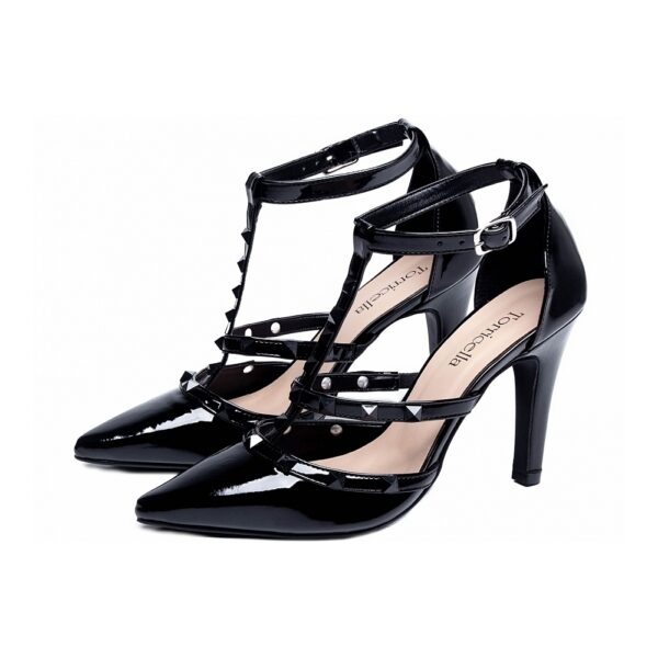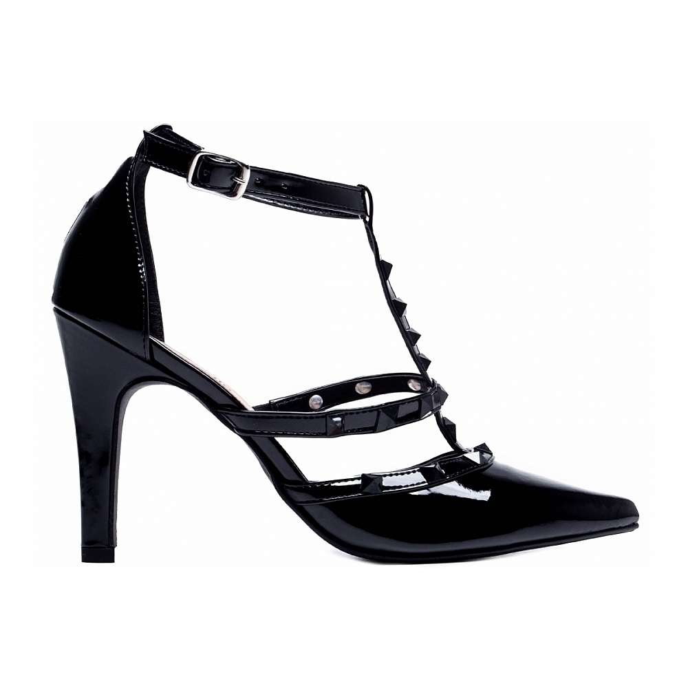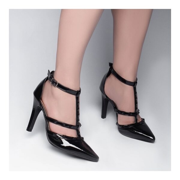 Salto: 9 cm de Altura Revestido em Verniz Preto;