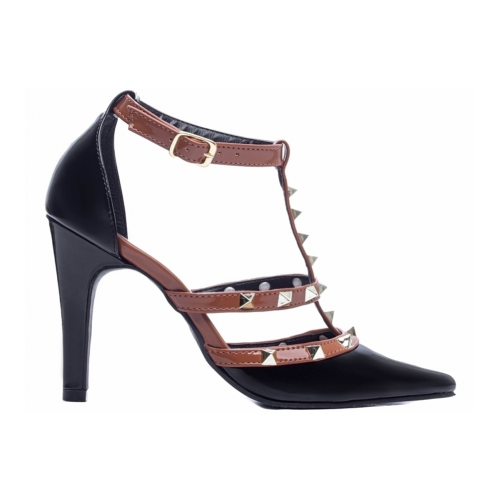Salto: 9 cm de Altura Revestido em Verniz Preto;