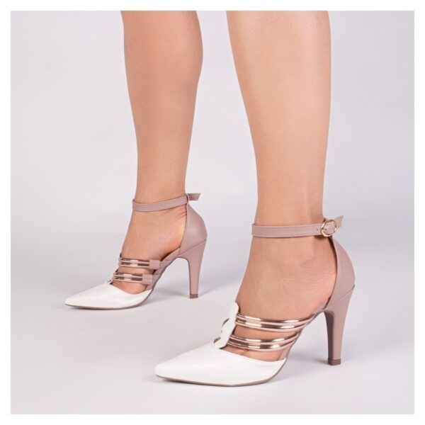 Palmilha: 8 mm de Espessura, Espuma em EVA, Revestida em Napa Rosê e Taloneira Napa Bege;