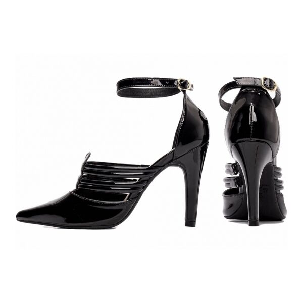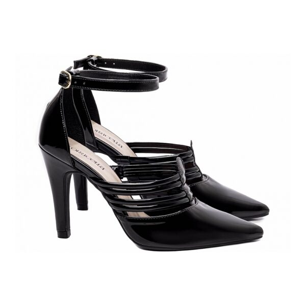 Salto: 9 cm de Altura Revestido em Verniz Preto;