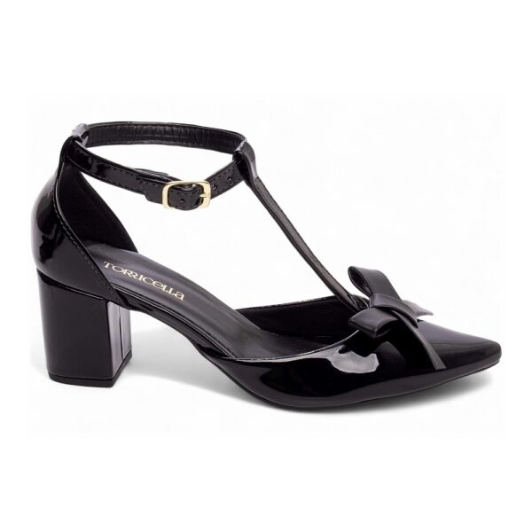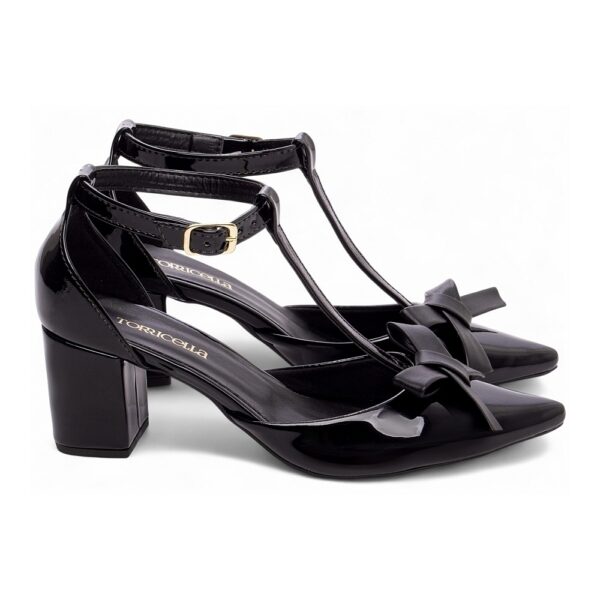 Salto: Grosso com 6,5 cm de Altura Revestido em Verniz Preto;