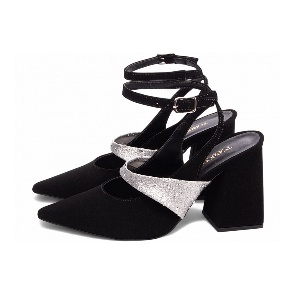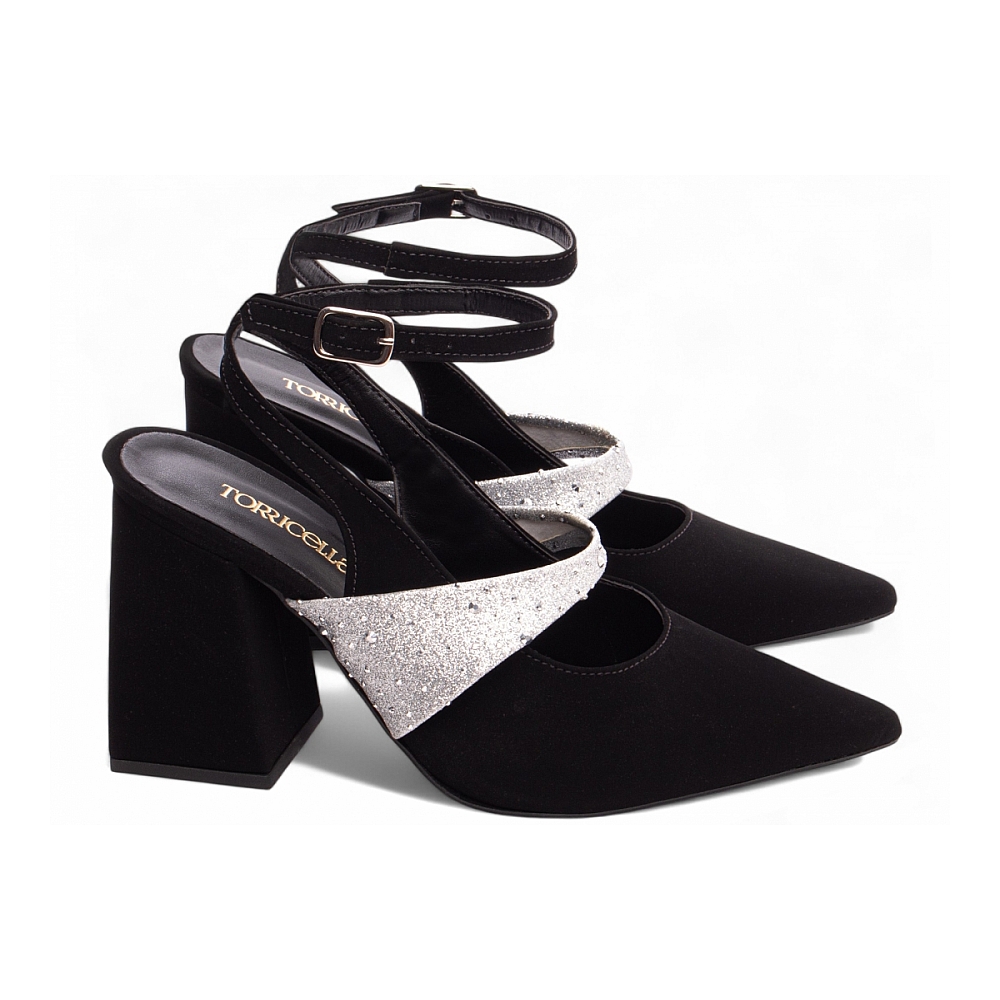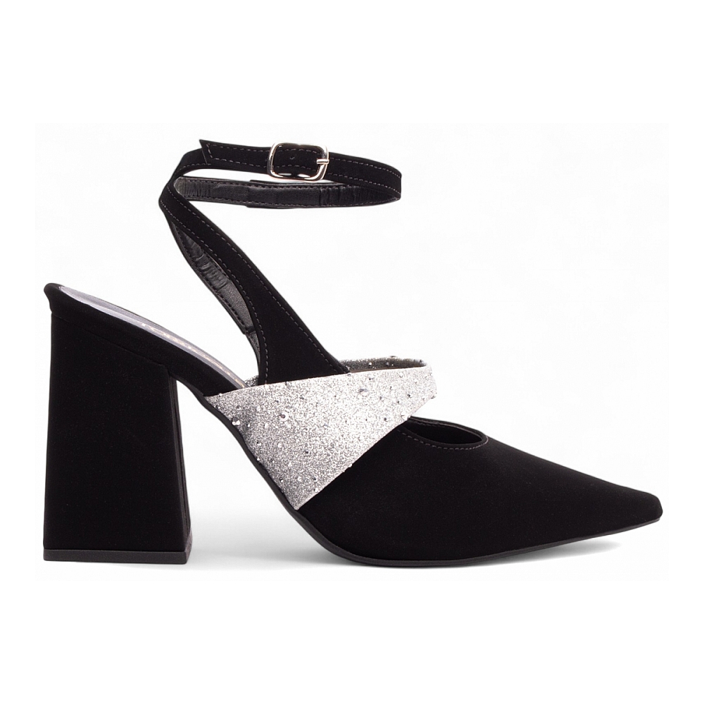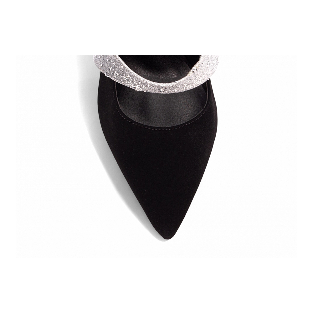 Material: Nobuck Preto / Napa Glitter na cor Prata;