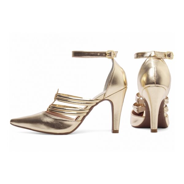 Salto: 9 cm de Altura Revestido em Napa Dourado;