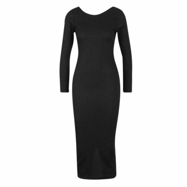 Vestido Canelado Costa Nua Manga Longa Midi | REF: NCR0006