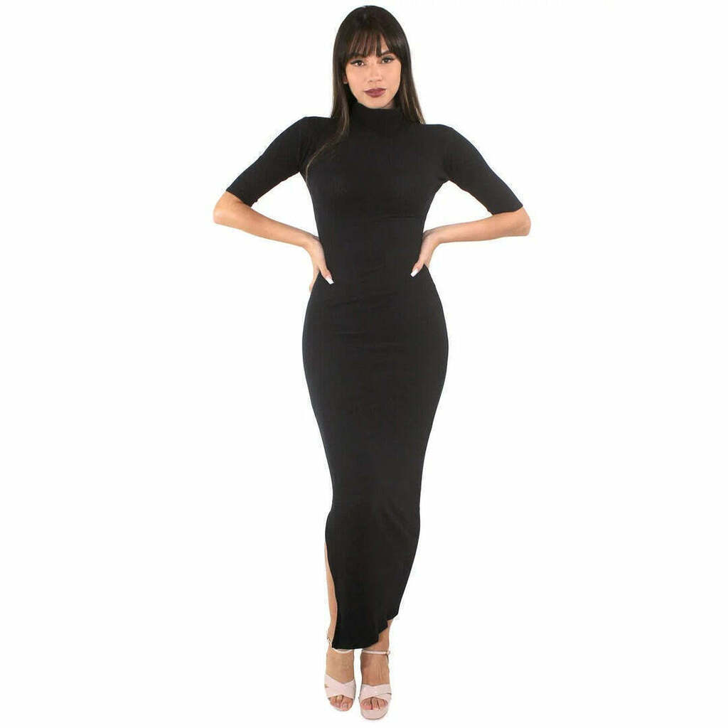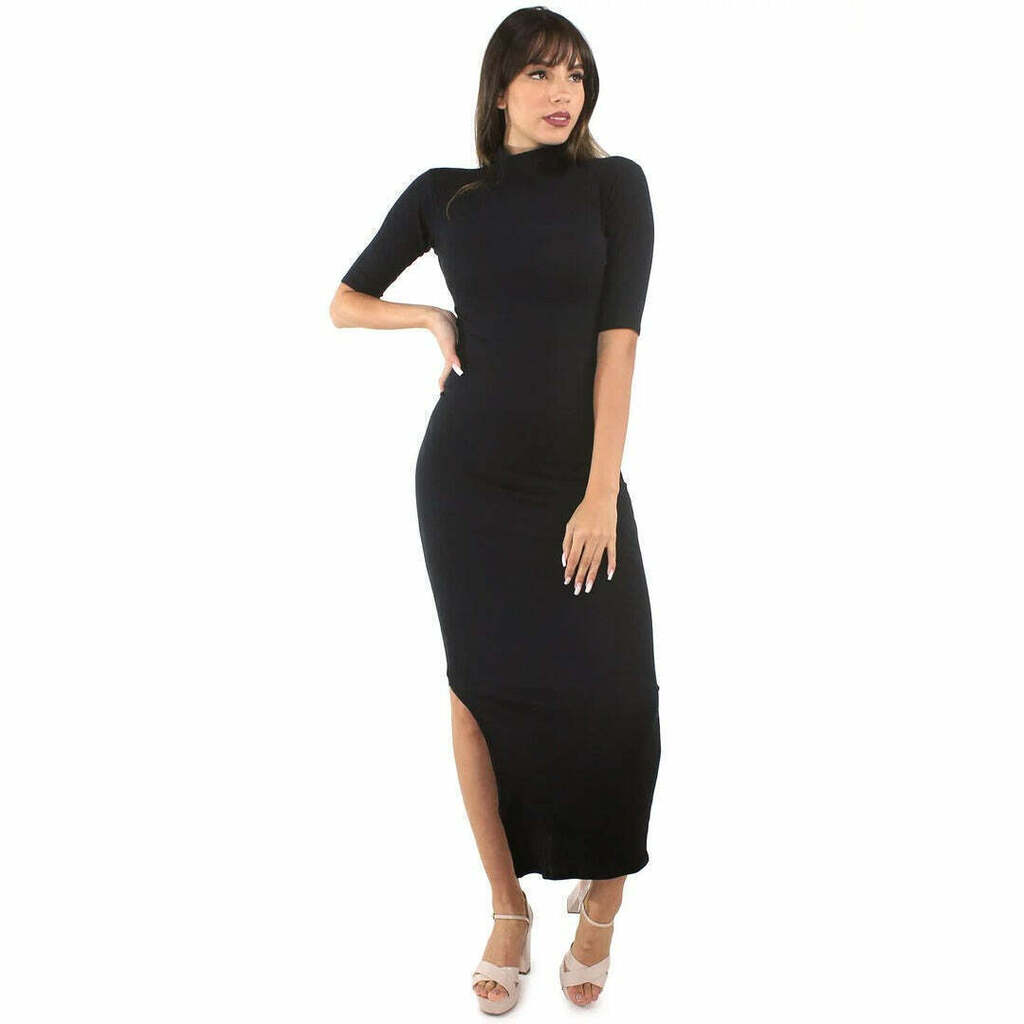 Vestido Com Gola e Manga 3/4 e Fenda Longo | REF: VXN05
