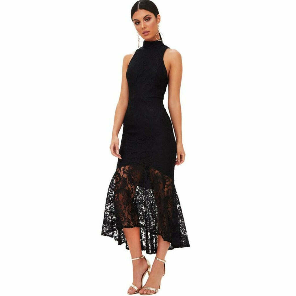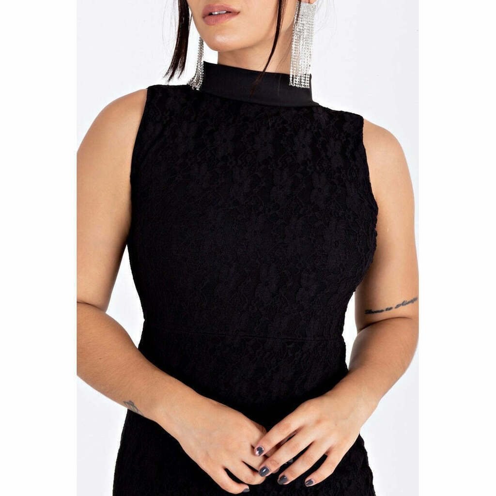 Vestido De Renda Gola Alta Preto Midi | REF: VRP3