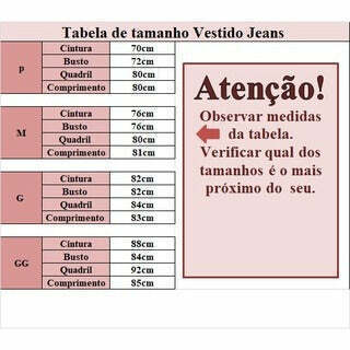 · P – Cintura: 70cm/ Busto: 72cm/ Quadril: 80cm/ Comprimento: 80cm