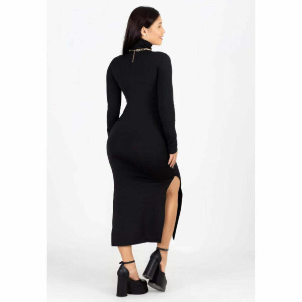 Este vestido Midi é um verdadeiro luxo. Com mangas longas e gola alta, ele traz um toque de elegância e sofisticação para qualquer ocasião. Feito com um tecido firme e elástico, que se adapta perfeitamente ao corpo, não apresenta transparência e nem forma aquelas indesejadas bolinhas. Sua modelagem é ampla e personalizada, garantindo um caimento perfeito e confortável. Uma peça de excelência em qualidade que não desbota com o tempo.